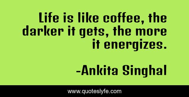 This page presents the quote "Life is like coffee, the darker it gets, the more it energizes.". Author of this quote is Ankita Singhal. This quote is about coffee, darkness, coffee-humor, life, coffee-lovers, dark-humor, energy-of-the-universe,.