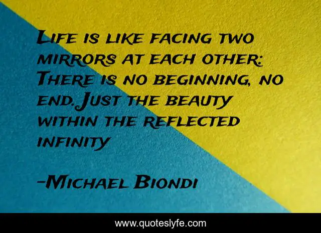 This page presents the quote "Life is like facing two mirrors at each other: There is no beginning, no end. Just the beauty within the reflected infinity". Author of this quote is Michael Biondi. This quote is about life-philosophy, life, poetry, life-lessons,.