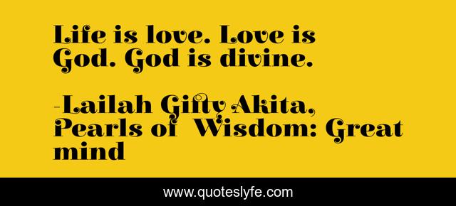 "Lailah Gifty Akita, Pearls of Wisdom: Great mind Quotes." Quoteslyfe.com, 2025. Mon. 08 Dec. 2025. <https://www.quoteslyfe.com/quote/Life-is-love-Love-is-God-God-77231>.
