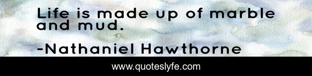 This page presents the quote "Life is made up of marble and mud.". Author of this quote is Nathaniel Hawthorne. This quote is about mud, up, marble,.