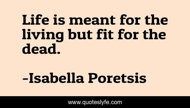 This page presents the quote "Life is meant for the living but fit for the dead.". Author of this quote is Isabella Poretsis. This quote is about living, life, government, dead, reality, society, society-denial, law,.