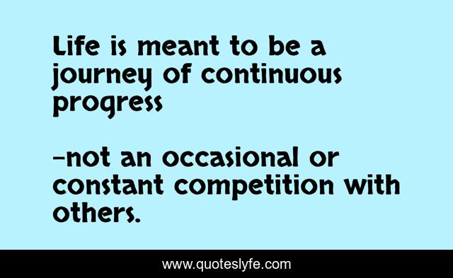 This page presents the quote "Life is meant to be a journey of continuous progress". Author of this quote is not an occasional or constant competition with others.. .