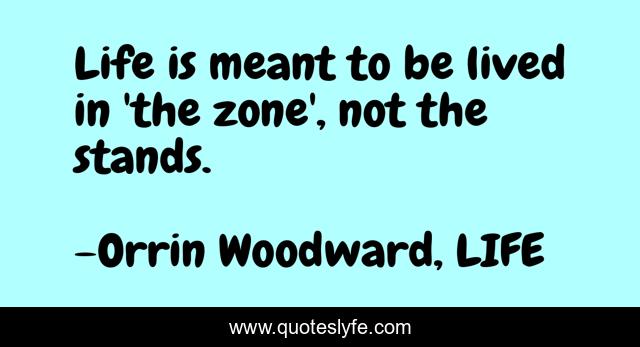 This page presents the quote "Life is meant to be lived in 'the zone', not the stands.". Author of this quote is Orrin Woodward, LIFE. .