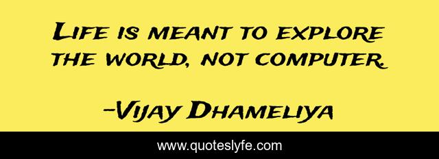 This page presents the quote "Life is meant to explore the world, not computer.". Author of this quote is Vijay Dhameliya. This quote is about life, computers, internet,.