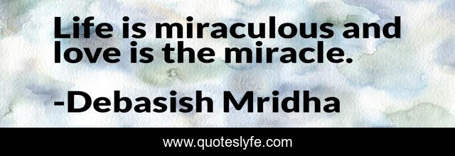 This page presents the quote "Life is miraculous and love is the miracle.". Author of this quote is Debasish Mridha. This quote is about life, love, knowledge, inspirational, intelligence, philosophy, wisdom, quotes, affection,.