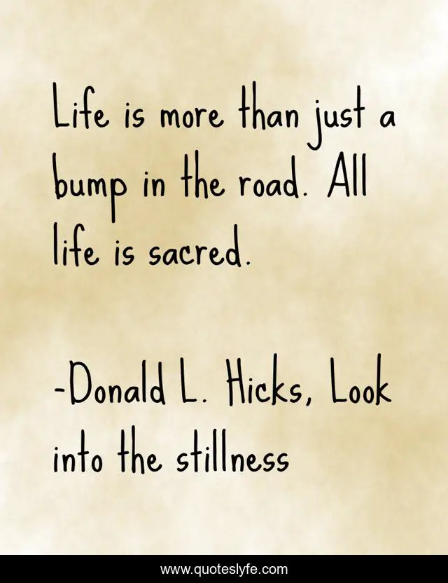"Donald L. Hicks, Look into the stillness Quotes." Quoteslyfe.com, 2025. Fri. 05 Dec. 2025. <https://www.quoteslyfe.com/quote/Life-is-more-than-just-a-bump-210088>.