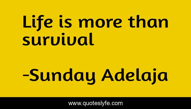 This page presents the quote "Life is more than survival". Author of this quote is Sunday Adelaja. This quote is about love, people, money, principles, worship, destiny, god, nature-of-god, image-of-god,.