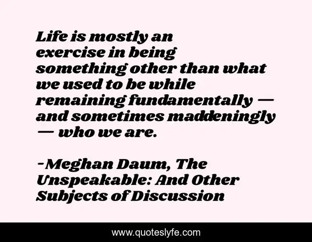 This page presents the quote "Life is mostly an exercise in being something other than what we used to be while remaining fundamentally — and sometimes maddeningly — who we are.". Author of this quote is Meghan Daum, The Unspeakable: And Other Subjects of Discussion. .
