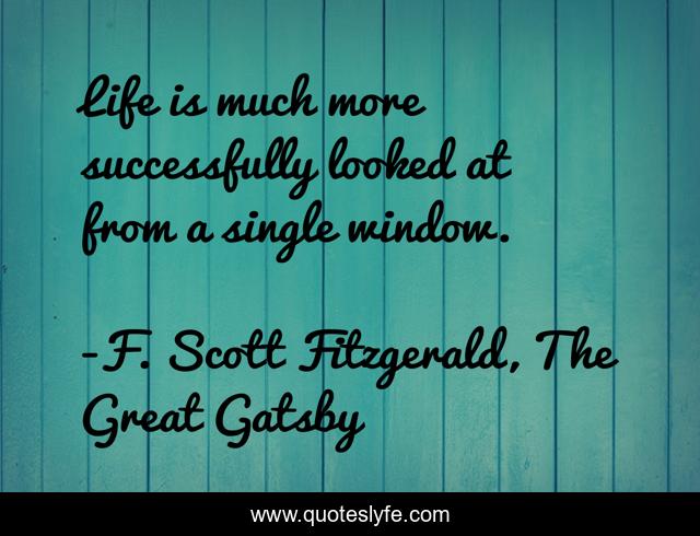 This page presents the quote "Life is much more successfully looked at from a single window.". Author of this quote is F. Scott Fitzgerald, The Great Gatsby. .