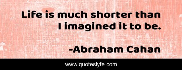 This page presents the quote "Life is much shorter than I imagined it to be.". Author of this quote is Abraham Cahan. This quote is about much, imagined,.