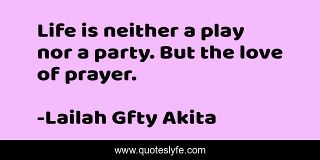 This page presents the quote "Life is neither a play nor a party. But the love of prayer.". Author of this quote is Lailah Gfty Akita. This quote is about living, play, christian, love, advice, self-help, life, lessons-learnt, prayer,.