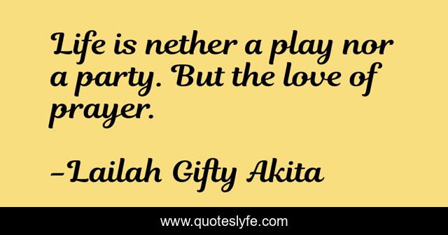 This page presents the quote "Life is nether a play nor a party. But the love of prayer.". Author of this quote is Lailah Gifty Akita. This quote is about play, christian, advice, life, self-help, party,.
