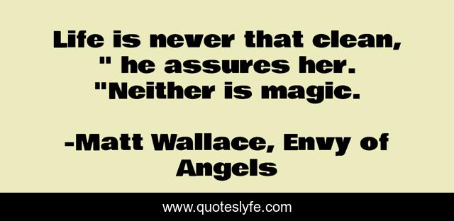 This page presents the quote "Life is never that clean, " he assures her. "Neither is magic.". Author of this quote is Matt Wallace, Envy of Angels. .