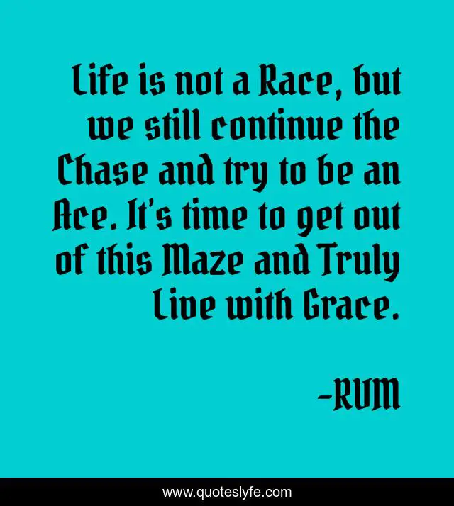 This page presents the quote "Life is not a Race, but we still continue the Chase and try to be an Ace. It’s time to get out of this Maze and Truly Live with Grace.". Author of this quote is RVM. This quote is about enthusiasm, motivation, inspirational,.