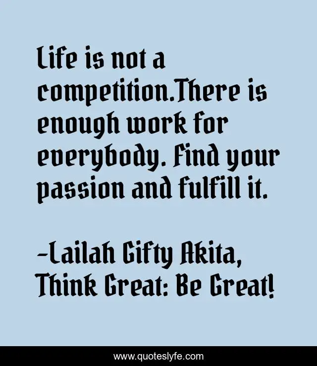 "Lailah Gifty Akita, Think Great: Be Great! Quotes." Quoteslyfe.com, 2025. Fri. 05 Dec. 2025. <https://www.quoteslyfe.com/quote/Life-is-not-a-competition-There-is-97291>.