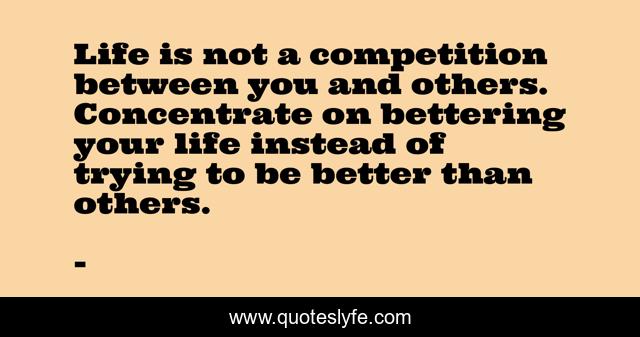 This page presents the quote "Life is not a competition between you and others. Concentrate on bettering your life instead of trying to be better than others.". Author of this quote is . This quote is about edmond-mbiaka, bettering-yourself, trying-to-be-better-than-others, life, better-your-life,.