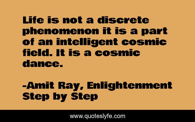 Life is not a discrete phenomenon it is a part of an intelligent cosmic field. It is a cosmic dance.