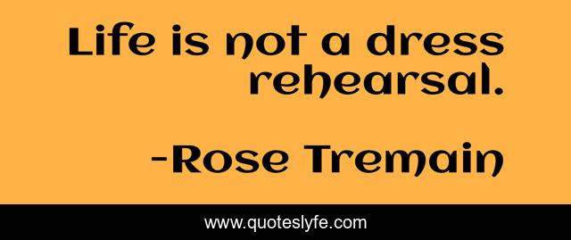 "Rose Tremain Quotes." Quoteslyfe.com, 2025. Sat. 06 Dec. 2025. <https://www.quoteslyfe.com/quote/Life-is-not-a-dress-rehearsal-269638>.