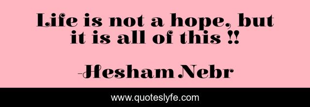 This page presents the quote "Life is not a hope, but it is all of this !!". Author of this quote is Hesham Nebr. This quote is about lesson, meaning-of-life, hope,.