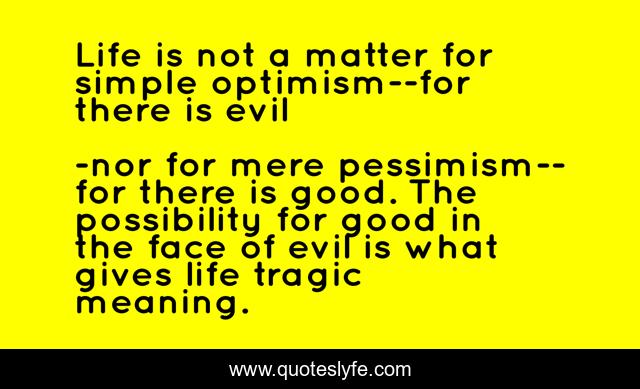 "nor for mere pessimism--for there is good. The possibility for good in the face of evil is what gives life tragic meaning. Quotes." Quoteslyfe.com, 2025. Fri. 05 Dec. 2025. <https://www.quoteslyfe.com/quote/Life-is-not-a-matter-for-simple-142376>.