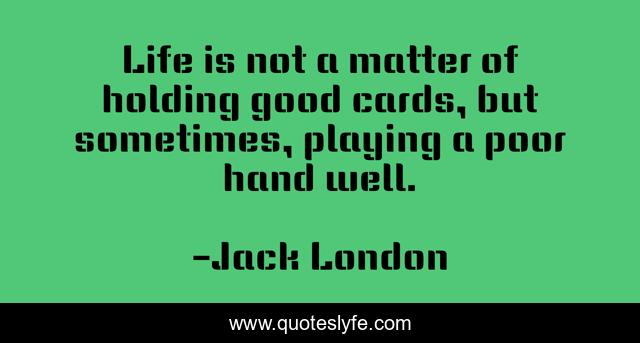 This page presents the quote "Life is not a matter of holding good cards, but sometimes, playing a poor hand well.". Author of this quote is Jack London. This quote is about cards, matter, life,.