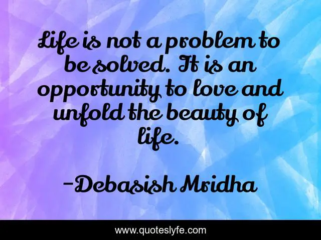 This page presents the quote "Life is not a problem to be solved. It is an opportunity to love and unfold the beauty of life.". Author of this quote is Debasish Mridha. This quote is about life, life-is-an-opportunity, love, life-is-not-a-problem, philosophy, debasish-mridha, quotes, debasish-mridha-md, inspirational,.
