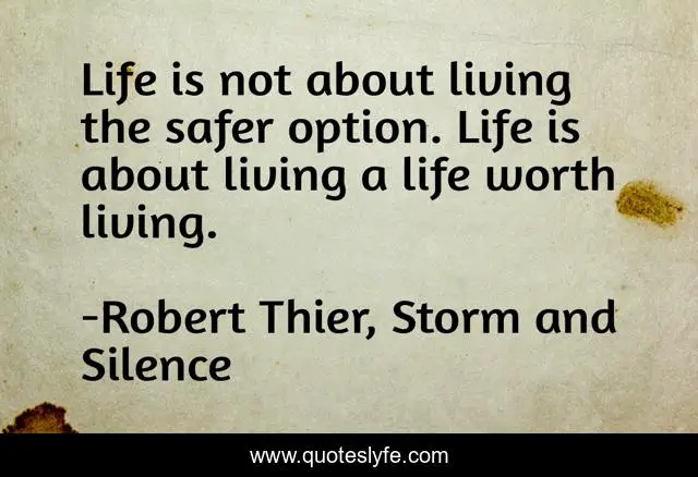"Robert Thier, Storm and Silence Quotes." Quoteslyfe.com, 2025. Fri. 05 Dec. 2025. <https://www.quoteslyfe.com/quote/Life-is-not-about-living-the-safer-91853>.
