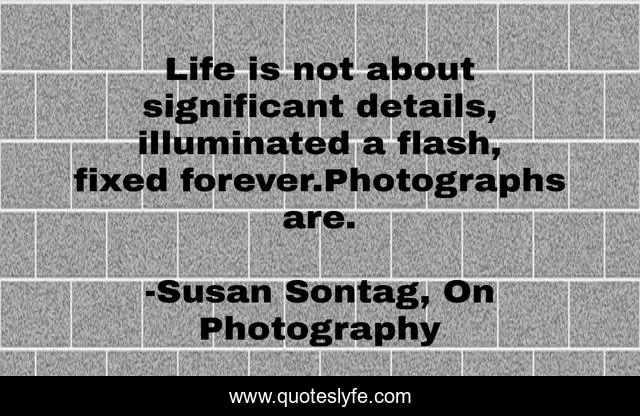 "Susan Sontag, On Photography Quotes." Quoteslyfe.com, 2025. Fri. 05 Dec. 2025. <https://www.quoteslyfe.com/quote/Life-is-not-about-significant-details-illuminated-238512>.