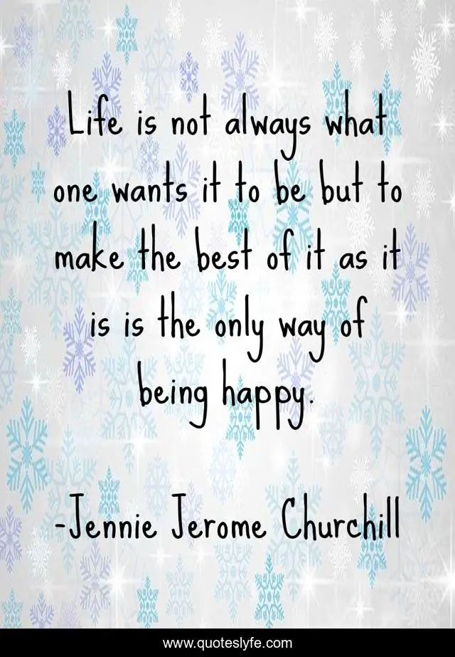 This page presents the quote "Life is not always what one wants it to be but to make the best of it as it is is the only way of being happy.". Author of this quote is Jennie Jerome Churchill. .