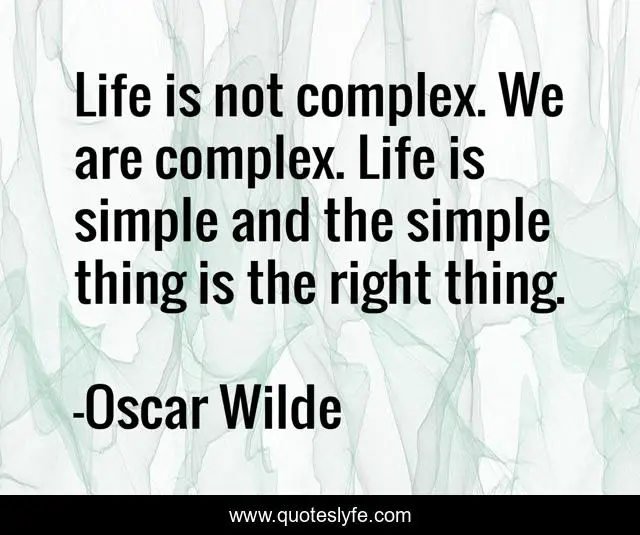 This page presents the quote "Life is not complex. We are complex. Life is simple and the simple thing is the right thing.". Author of this quote is Oscar Wilde. .