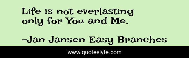 This page presents the quote "Life is not everlasting only for You and Me.". Author of this quote is Jan Jansen Easy Branches. This quote is about love, affection,.