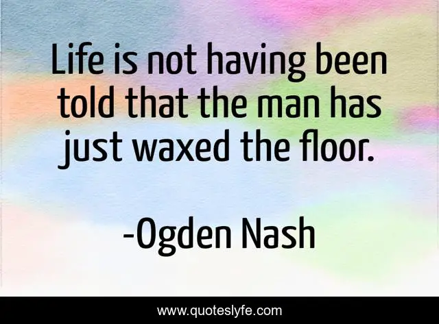 This page presents the quote "Life is not having been told that the man has just waxed the floor.". Author of this quote is Ogden Nash. .