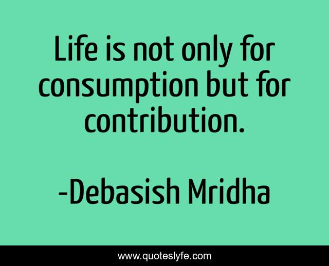 This page presents the quote "Life is not only for consumption but for contribution.". Author of this quote is Debasish Mridha. This quote is about life, consumption, philosophy, debasish-mridha, quotes, debasish-mridha-md, inspirational, enthusiasm, life-contribution,.