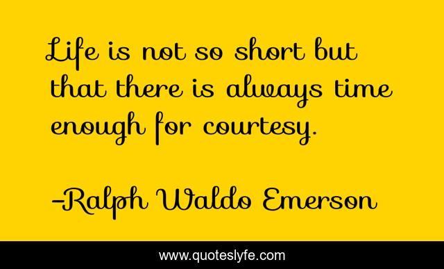 This page presents the quote "Life is not so short but that there is always time enough for courtesy.". Author of this quote is Ralph Waldo Emerson. .