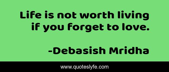 This page presents the quote "Life is not worth living if you forget to love.". Author of this quote is Debasish Mridha. This quote is about life, love, knowledge, inspirational, intelligence, philosophy, wisdom, quotes, affection,.