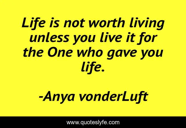 This page presents the quote "Life is not worth living unless you live it for the One who gave you life.". Author of this quote is Anya vonderLuft. .