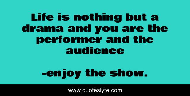 "enjoy the show. Quotes." Quoteslyfe.com, 2025. Sun. 07 Dec. 2025. <https://www.quoteslyfe.com/quote/Life-is-nothing-but-a-drama-and-135854>.
