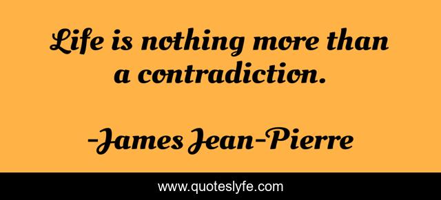 This page presents the quote "Life is nothing more than a contradiction.". Author of this quote is James Jean-Pierre. This quote is about life, contradiction, life-lessons, quotes-about-life,.