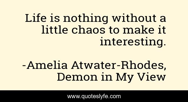 This page presents the quote "Life is nothing without a little chaos to make it interesting.". Author of this quote is Amelia Atwater-Rhodes, Demon in My View. This quote is about life, chaos,.