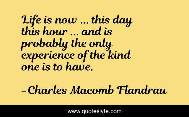 This page presents the quote "Life is now ... this day this hour ... and is probably the only experience of the kind one is to have.". Author of this quote is Charles Macomb Flandrau. This quote is about day, one,.