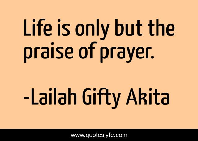 This page presents the quote "Life is only but the praise of prayer.". Author of this quote is Lailah Gifty Akita. This quote is about christian, life, praying, god-grace, prayer,.