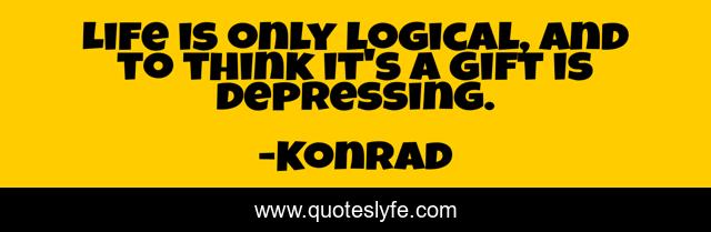 This page presents the quote "Life is only logical, and to think it's a gift is depressing.". Author of this quote is Konrad. This quote is about life, demotivational, logic,.