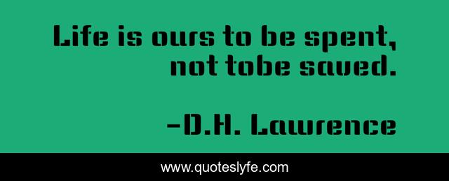 This page presents the quote "Life is ours to be spent, not tobe saved.". Author of this quote is D.H. Lawrence. This quote is about enthusiasm, life, inspirational,.