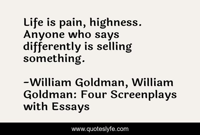 "William Goldman, William Goldman: Four Screenplays with Essays Quotes." Quoteslyfe.com, 2025. Sat. 06 Dec. 2025. <https://www.quoteslyfe.com/quote/Life-is-pain-highness-Anyone-who-says-1834>.