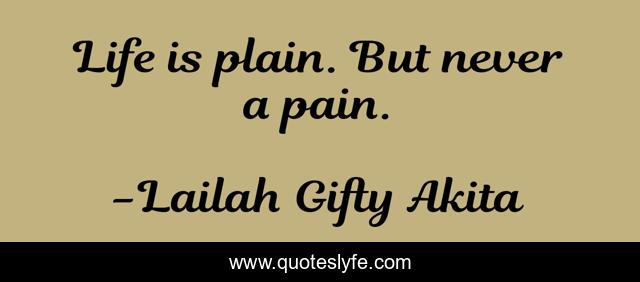 This page presents the quote "Life is plain. But never a pain.". Author of this quote is Lailah Gifty Akita. This quote is about plain, wise-words, inspirational, life-lessons, enthusiasm,.