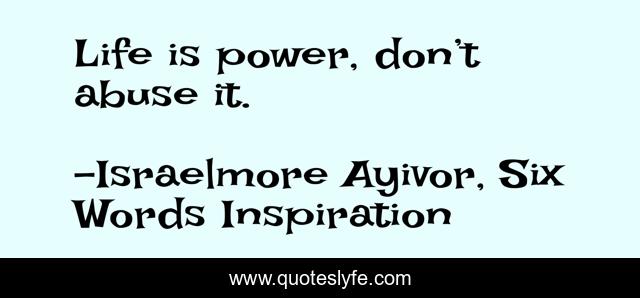 "Israelmore Ayivor, Six Words Inspiration Quotes." Quoteslyfe.com, 2025. Sat. 06 Dec. 2025. <https://www.quoteslyfe.com/quote/Life-is-power-don-t-abuse-it-29245>.