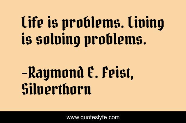 "Raymond E. Feist, Silverthorn Quotes." Quoteslyfe.com, 2025. Fri. 05 Dec. 2025. <https://www.quoteslyfe.com/quote/Life-is-problems-Living-is-solving-problems-2487>.