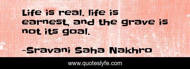 This page presents the quote "Life is real. life is earnest, and the grave is not its goal.". Author of this quote is Sravani Saha Nakhro. .