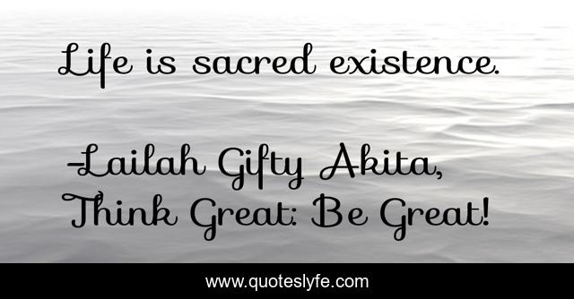 "Lailah Gifty Akita, Think Great: Be Great! Quotes." Quoteslyfe.com, 2025. Tue. 09 Dec. 2025. <https://www.quoteslyfe.com/quote/Life-is-sacred-existence-85149>.