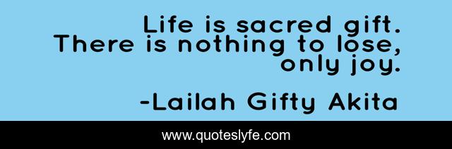 This page presents the quote "Life is sacred gift. There is nothing to lose, only joy.". Author of this quote is Lailah Gifty Akita. This quote is about life, wise, joy, motivational, confidence, optimistic, positive,.